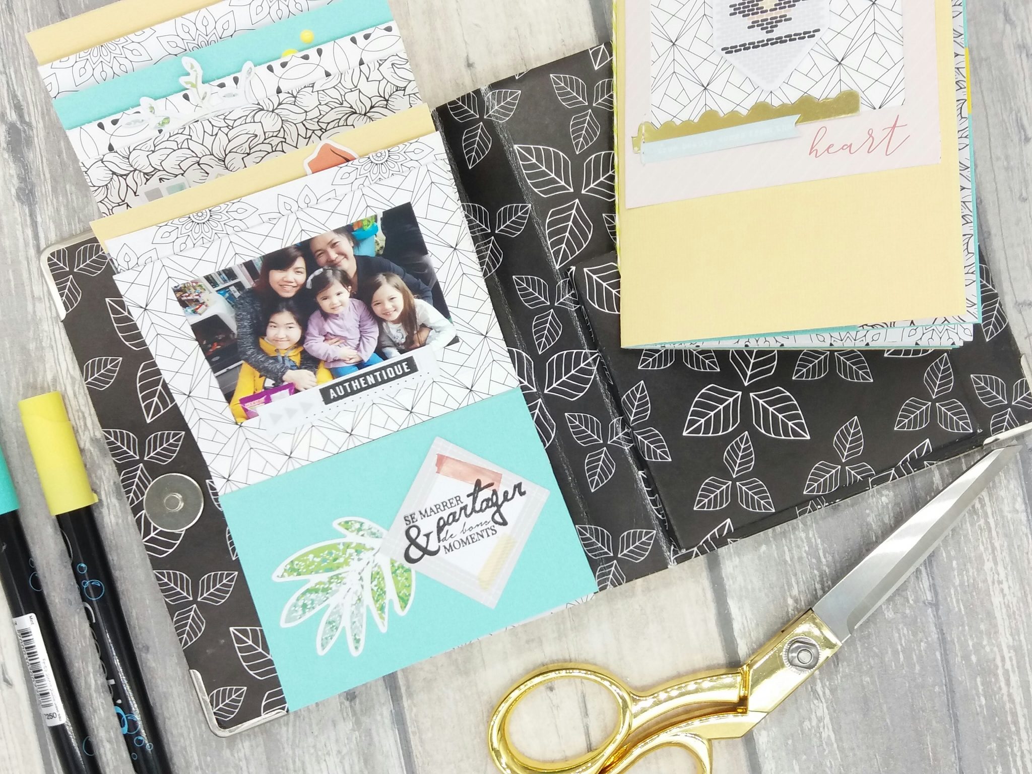 J’ai utilisé le kit mini et pages du mois d’avril et j’avoue que le combo couleurs m’a vraiment bien plu.