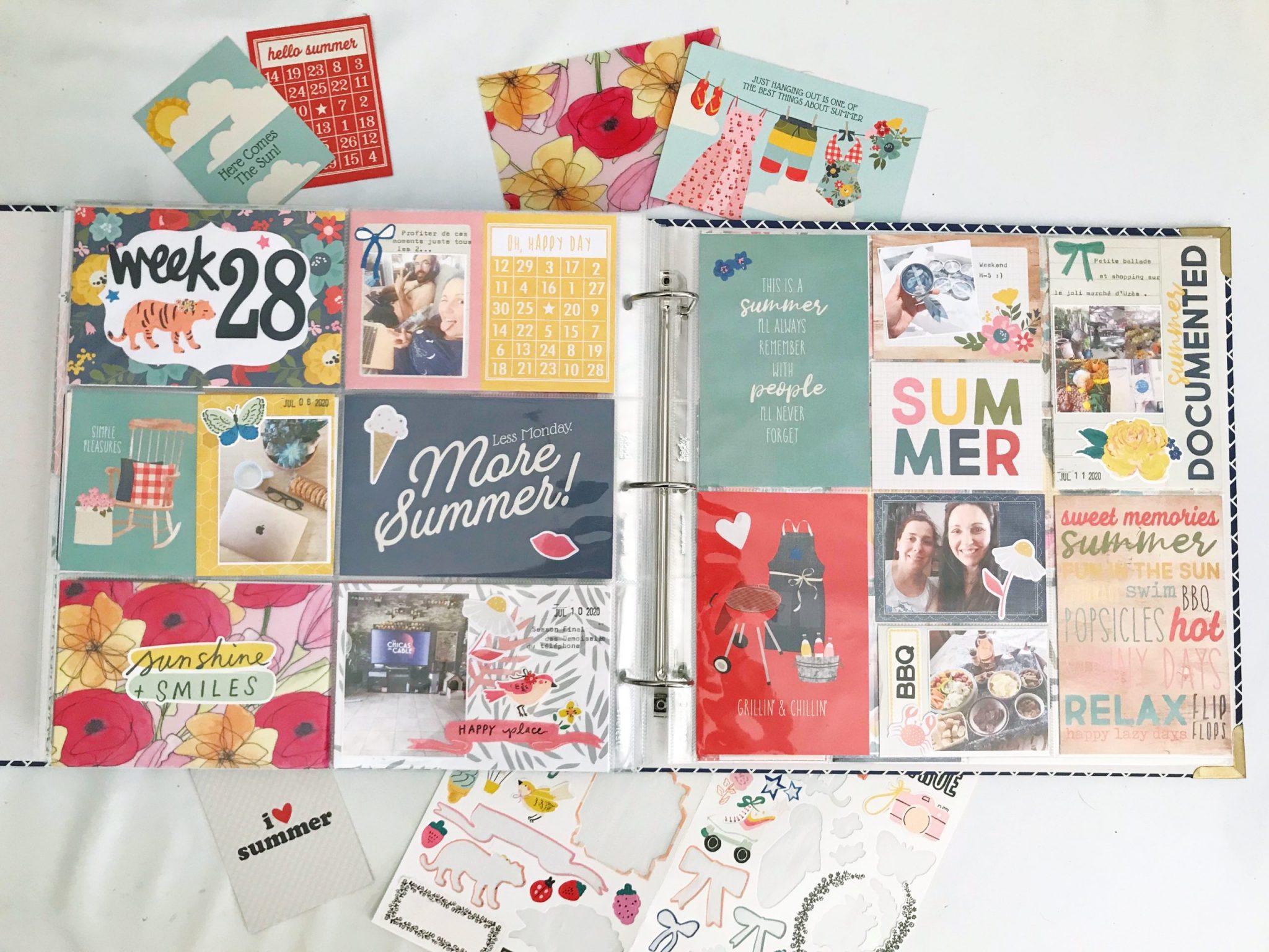 Comme toujours je commence par sélectionner mes cartes ( ici de la collection Summer Farmhouse de chez Simple Stories ) pour remplir mes pochettes :