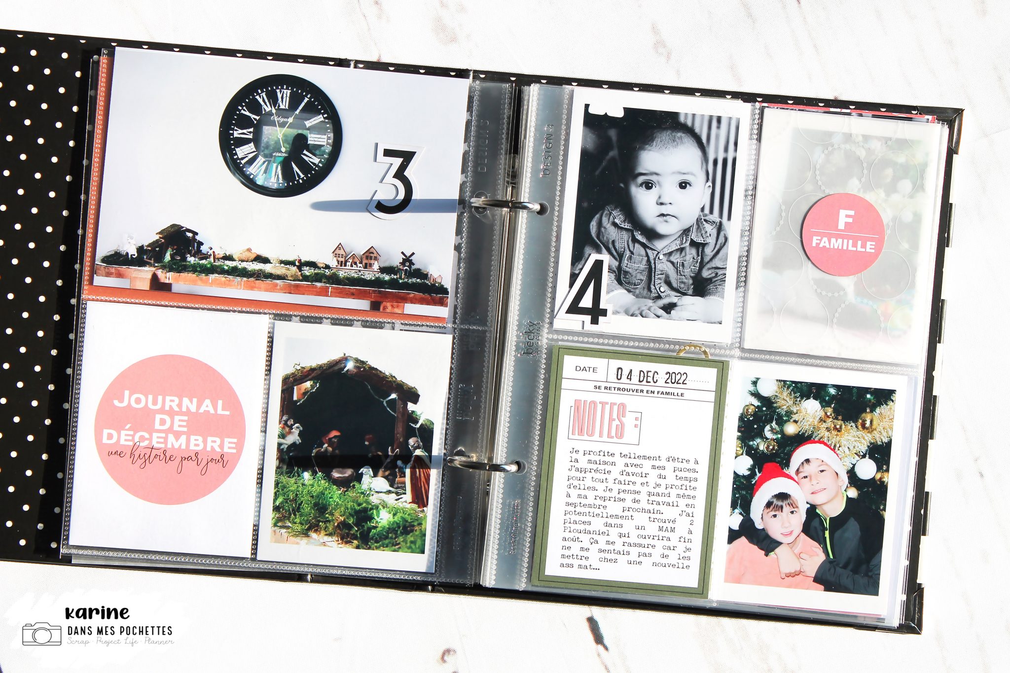 Hello tout le monde! Cette année pour mon December Daily j’utilise de nouveau un classeur 15*20 avec différents formats de pochettes. J’aime ce côté déstructuré…